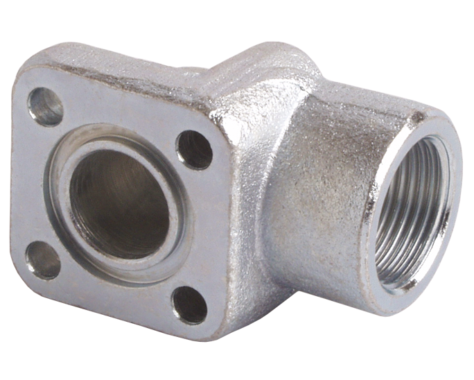 | Désignation | Bride acier coudée 4 trous entraxe 30 vis M6 taraudée 3/8" BSP |
