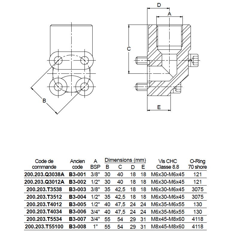 Pression de service : 180 bar - Livrée avec le joint O-Ring en nitrile 70 shore, 4 vis de fixation + rondelles grower