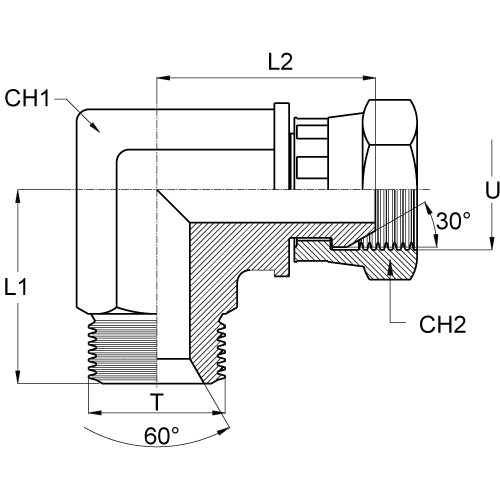 Coude égal 90° Mâle BSP x Femelle BSP écrou tournant inox |