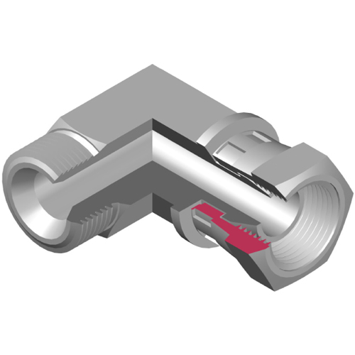 Coude égal 90° Mâle BSP x Femelle BSP écrou tournant inox |