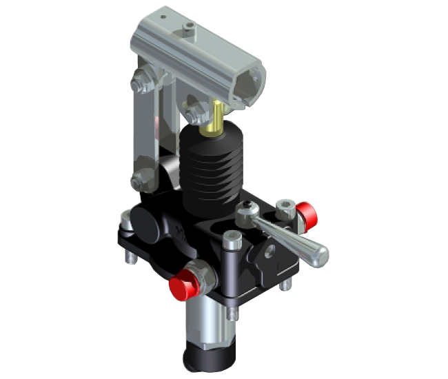 Pompe à main Fonte - D.E. sur réservoir 25cm3 + soufflet + distributeur 4/3 centre fermé (D2) - PMD 25 s
