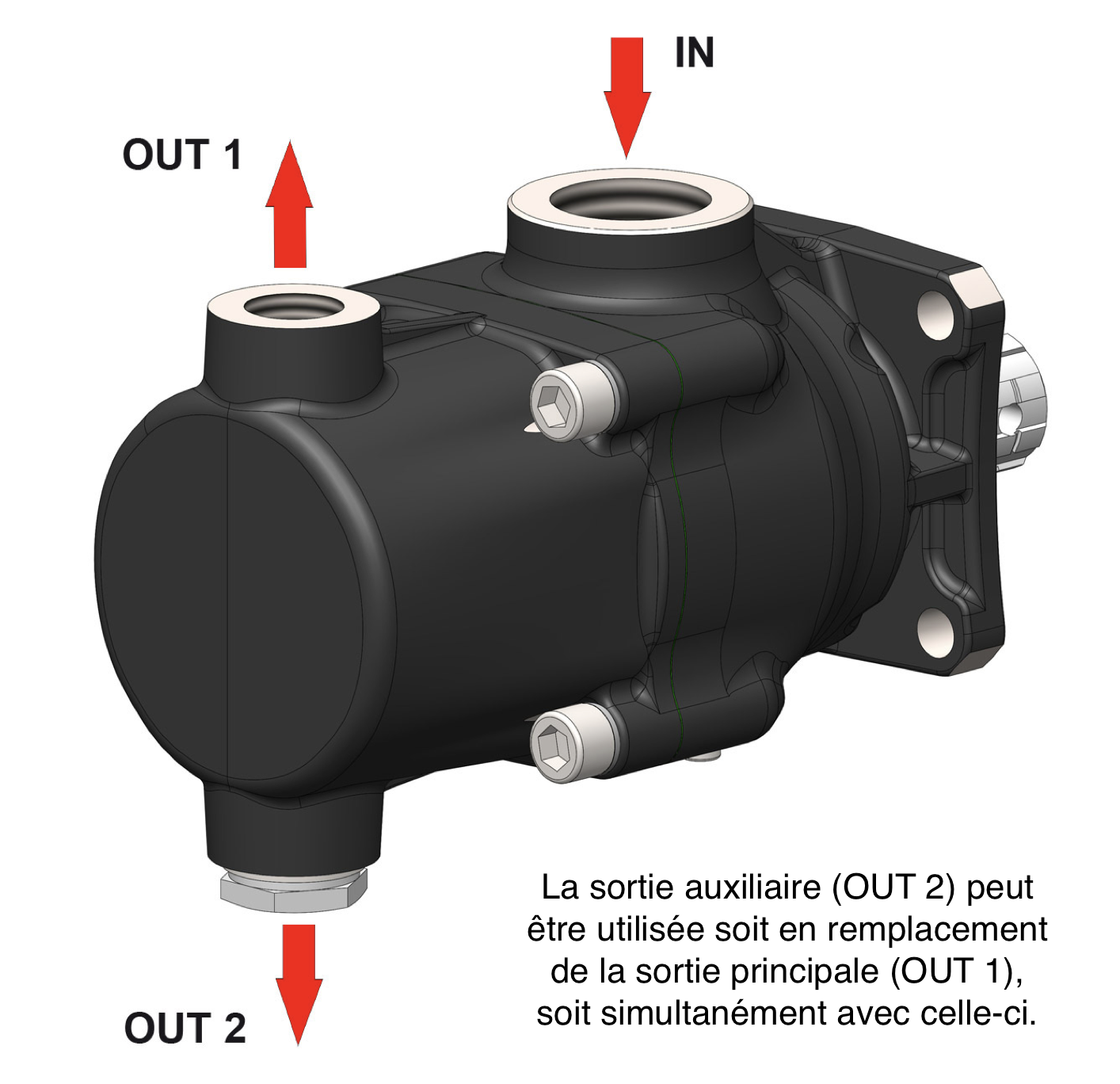 ProduitPompe à pistons DARK Courte - 55CC - Réversible - Arbre ISO 32x36 - 4 trous - Aspiration latérale et refoulement latéral et arrière